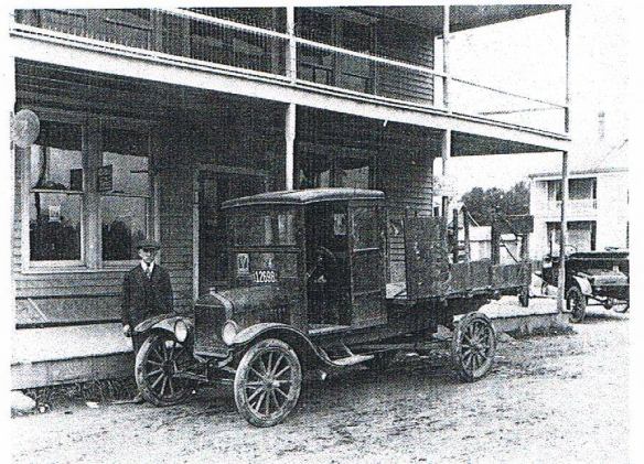 Here we see Sam Winstead standing in front of Winstead’s Dry Goods (Mercantile), offering everything from coffee to coffins, in downtown (Old) Latham, c. 1919.