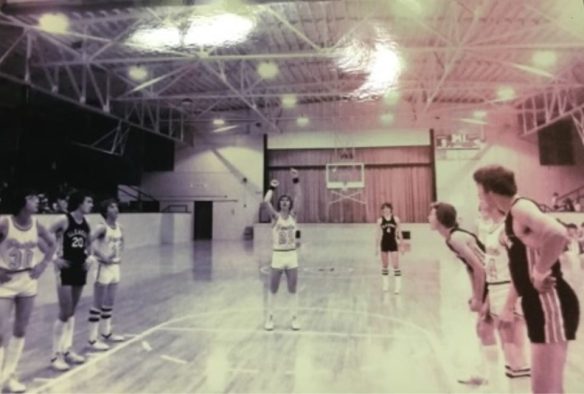 In 1936, the frame classrooms from the original school burned. (Ask some of the old-timers for details.) In 1937, a gymnasium was built which included two classrooms, a stage, and a cafeteria, making it possible for hot lunches to be served for the first time. Prior to this, basketball games were played outdoors on dirt courts.