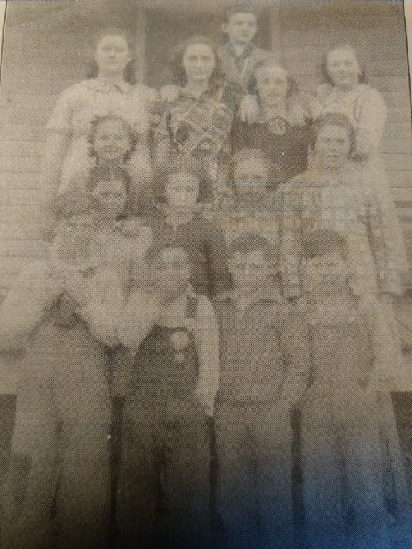Shown are students at Donoho School during the last year the school was in service. The school was located in District Number One at the intersection of Glover Road, Donoho Levee Road and Austin Springs Road.